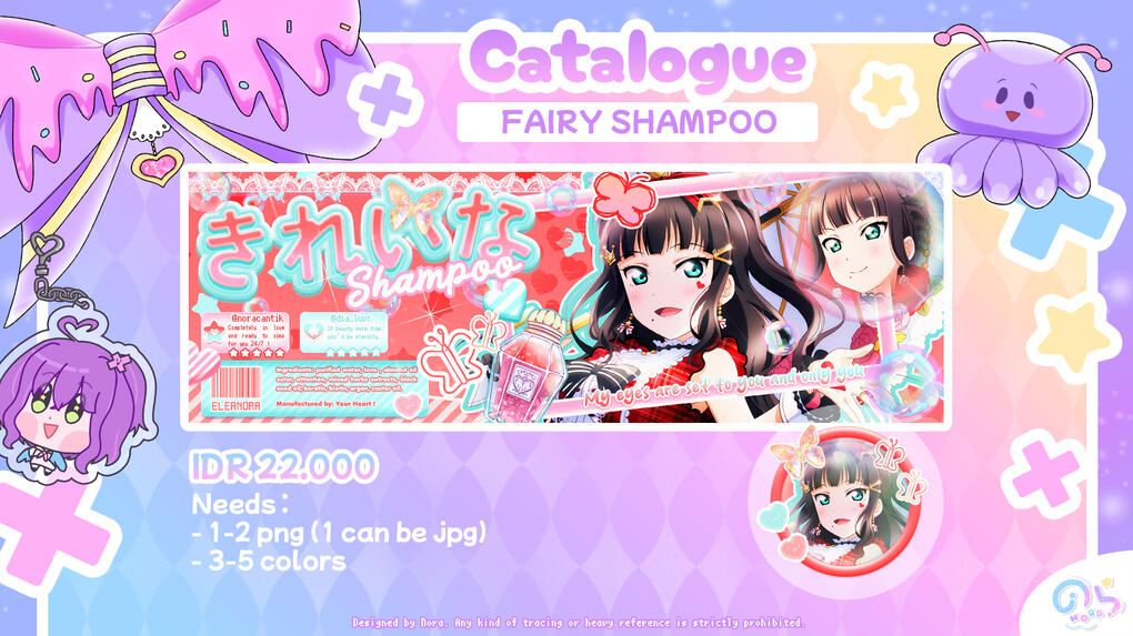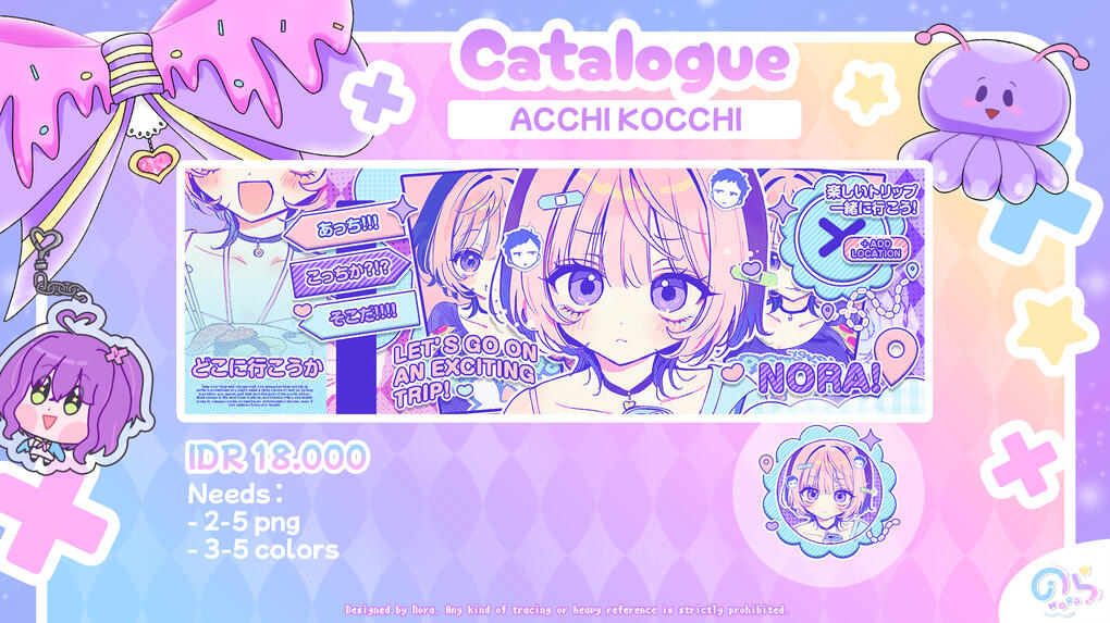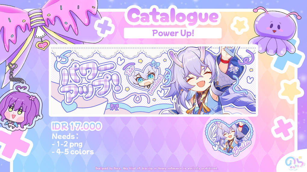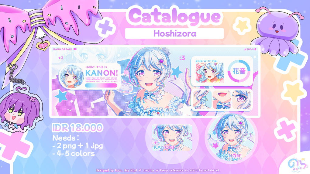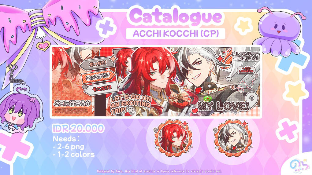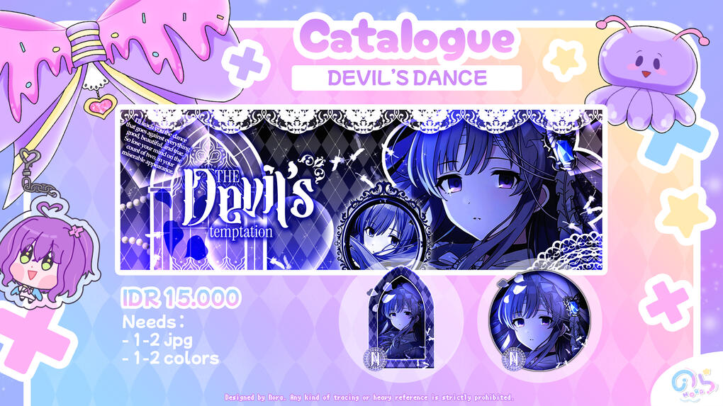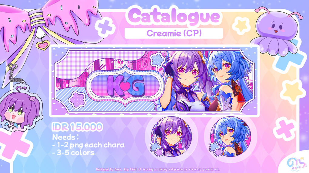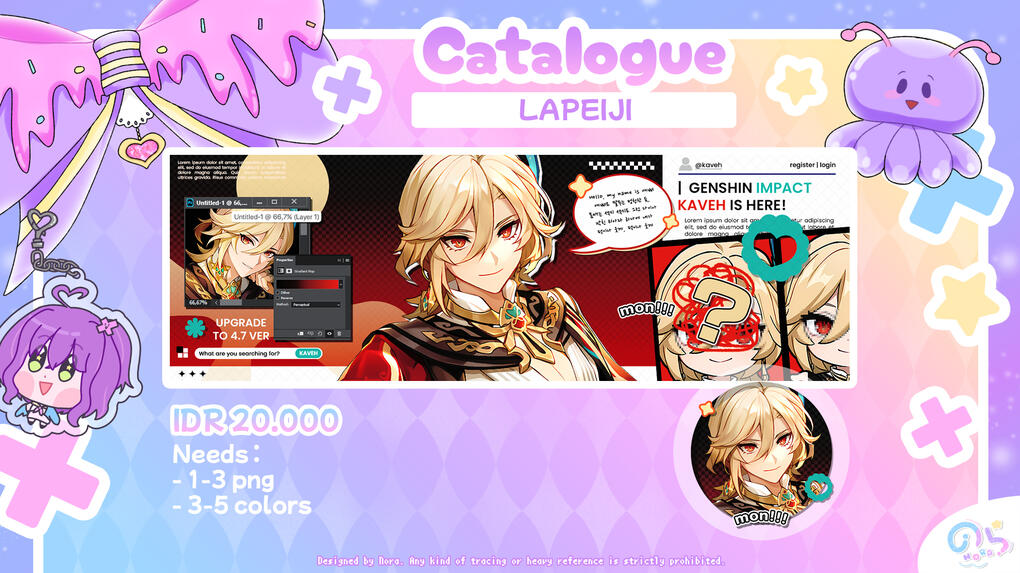 Semua desain yang ada di katalog akan diberi warna sesuai dengan foto yang diberikan. Kalau mau req warna, jangan lupa cantumin color palette di form :3 boleh berupa kode warna maupun foto6. REVISI